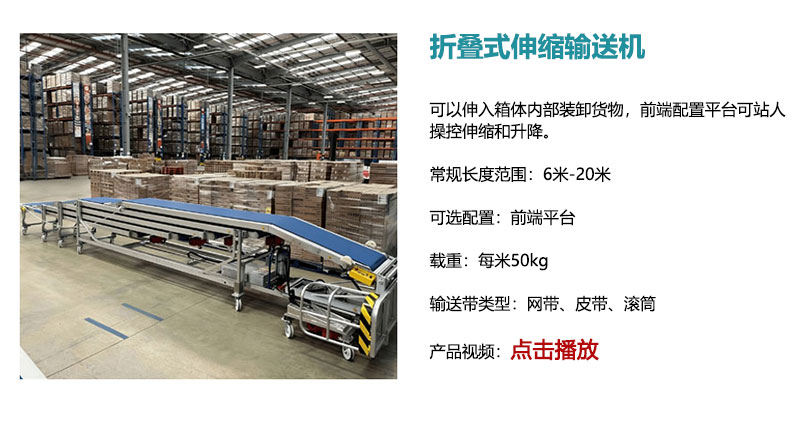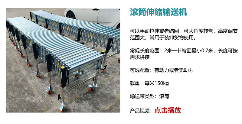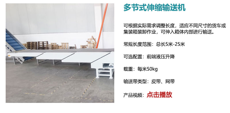 伸缩式输送机是一种可以在长度方向上自由伸缩,随时控制输送机长度的设备,可双向运转输送物料