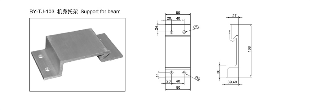 作为输送型材与支撑型材的连接件,选择合适尺寸的支撑梁使用。上侧台阶与输送梁凹槽配合,止动定位。